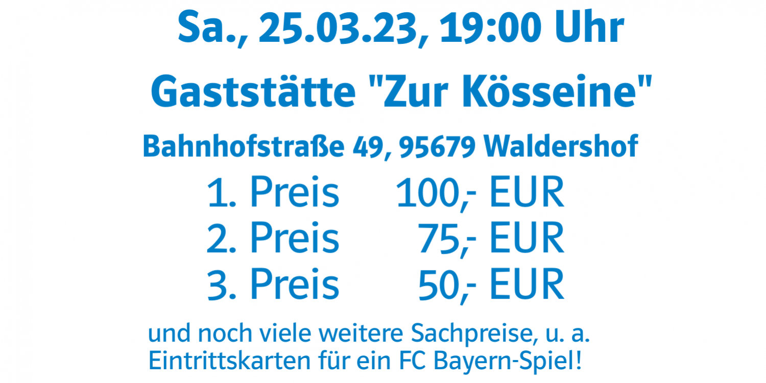 Die CSU Waldershof lädt zu ihrem traditionellen Preisschafkopf ein – wir freuen uns auf Euer Kommen!