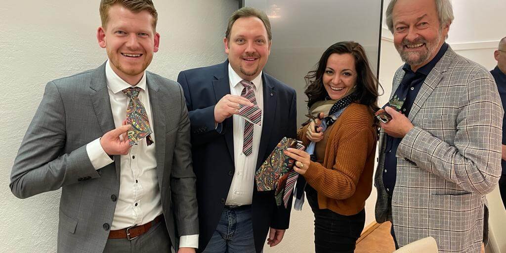 Da die Stadtratsarbeit auch an Weiberfasching nicht ruht, fand am 16.02.23 eine Stadtratssitzung statt. Dabei bewiesen drei Männer unserer CSU-/WB-Fraktion Mut und kamen trotz eines gewisses Risikos mit Krawatte zur Sitzung. Bürgermeisterin Margit Bayer ließ es sich natürlich nicht nehmen, hier mit der Schere ihrer Pflicht nachzukommen. 😉